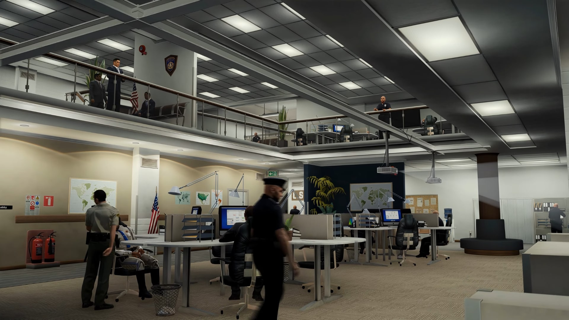 This interior includes all essential police rooms: public & underground lobbies, interrogation rooms, offices, armories, shooting range, gym, cells, and more.
